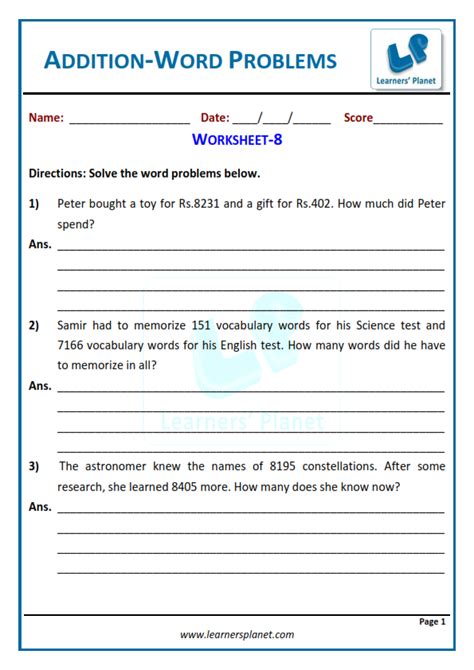 Free Download addition word problems 4th grade mobipocket PDF